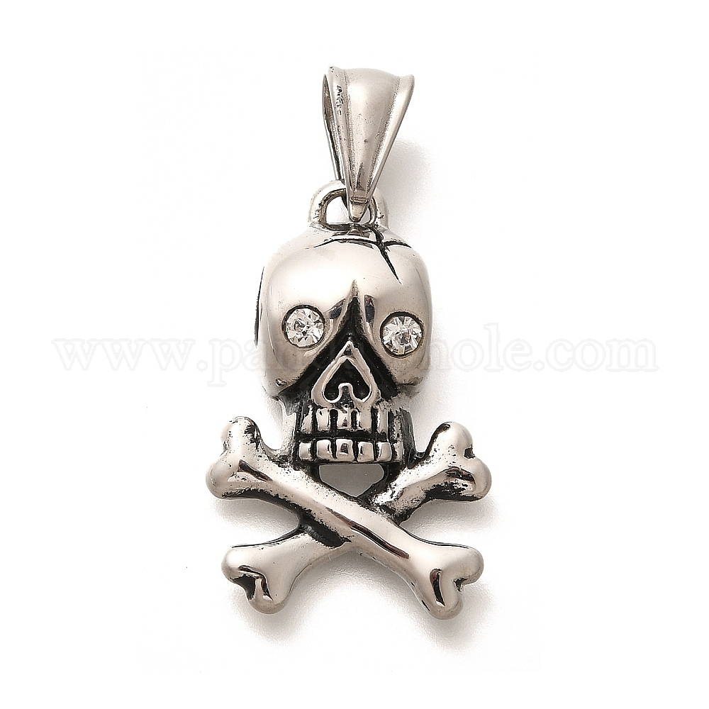 304 подвески из нержавеющей стали, с кристально горный хрусталь, очарование черепа