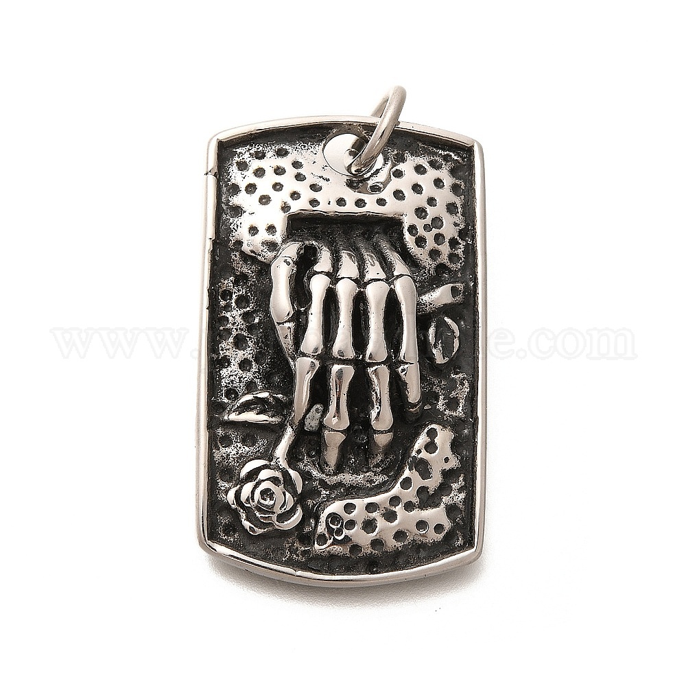 304 подвески из нержавеющей стали, с целью перехода в кольце, прямоугольник с рисунком костей рук