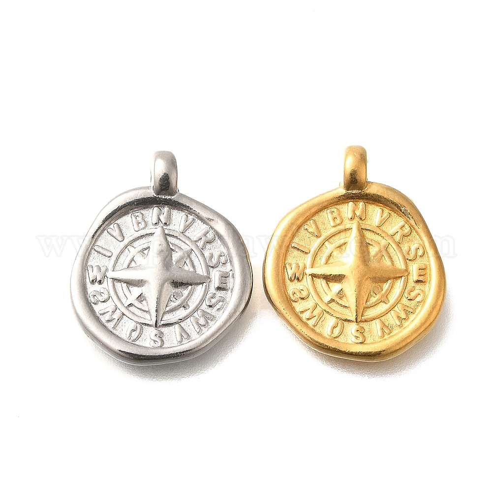 304 подвески из нержавеющей стали, плоский круглый с подвеской в виде компаса