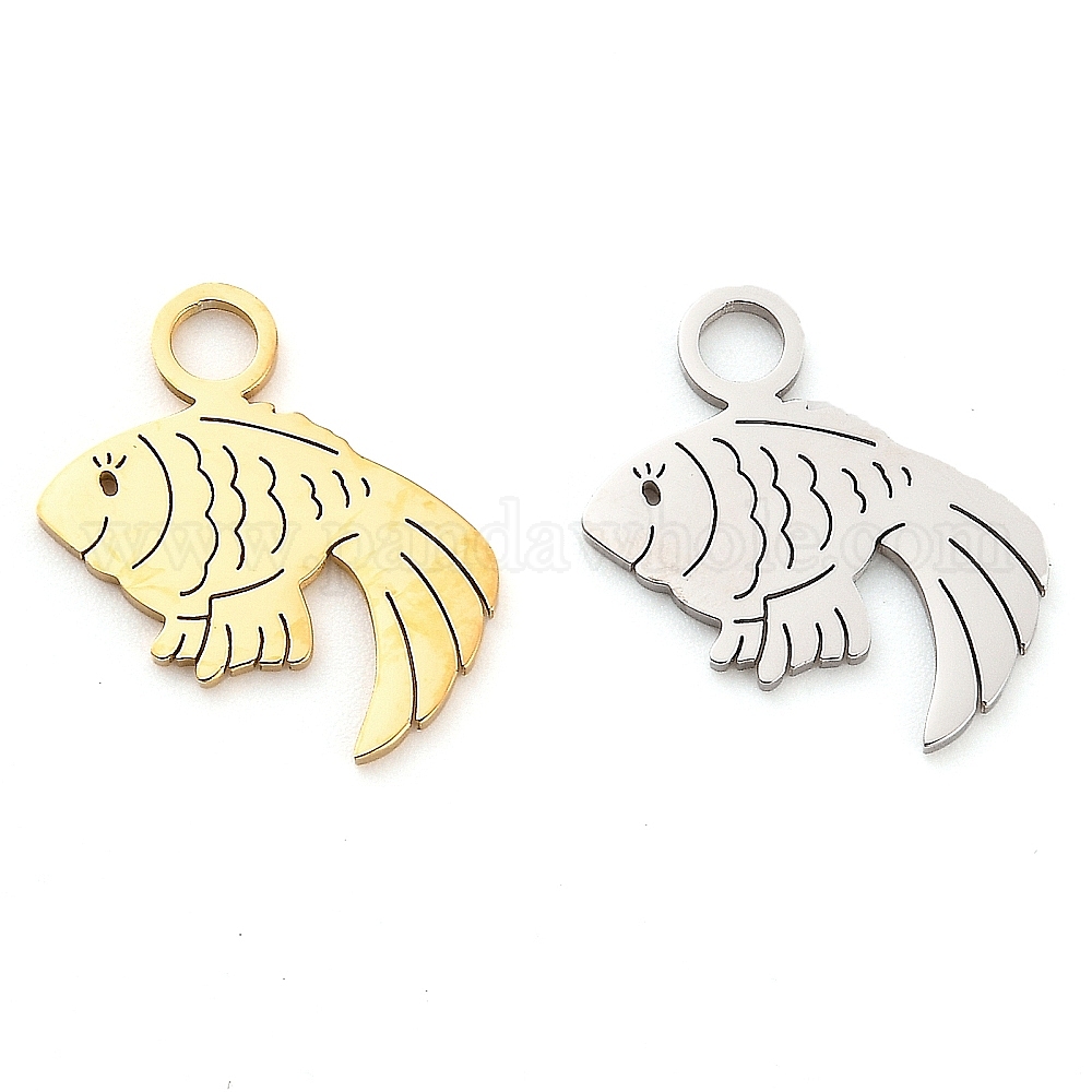 • Настоящее золото 18K 304 подвески из нержавеющей стали, лазерная резка, очарование рыбы, реальный 18 k позолоченный, 16.5x17.5x1 мм, отверстие : 2.5 мм