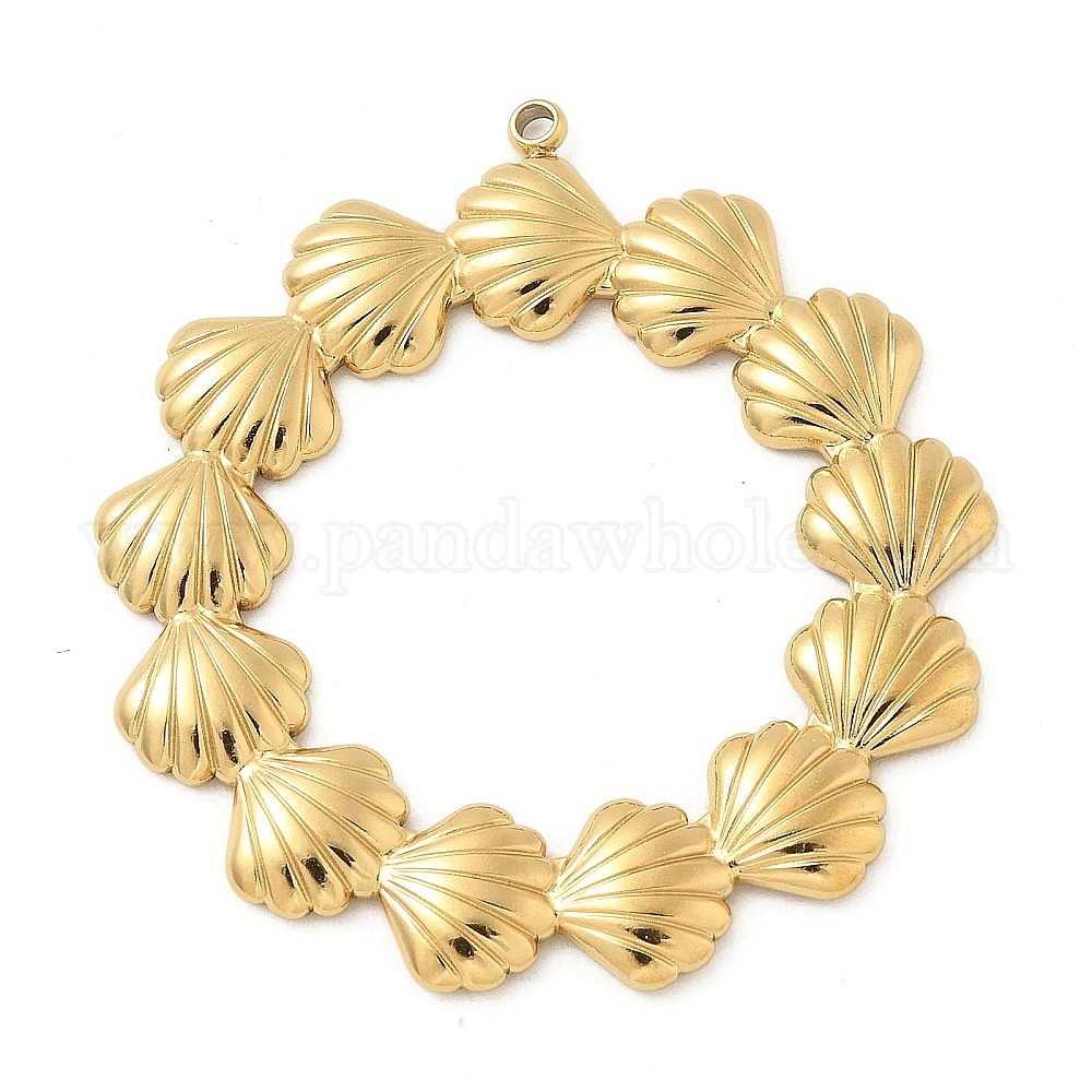 • Золотой 304 подвески из нержавеющей стали, кольцо с подвеской в виде ракушки, золотые, 37.5x35x2 мм, отверстие : 1.4 мм