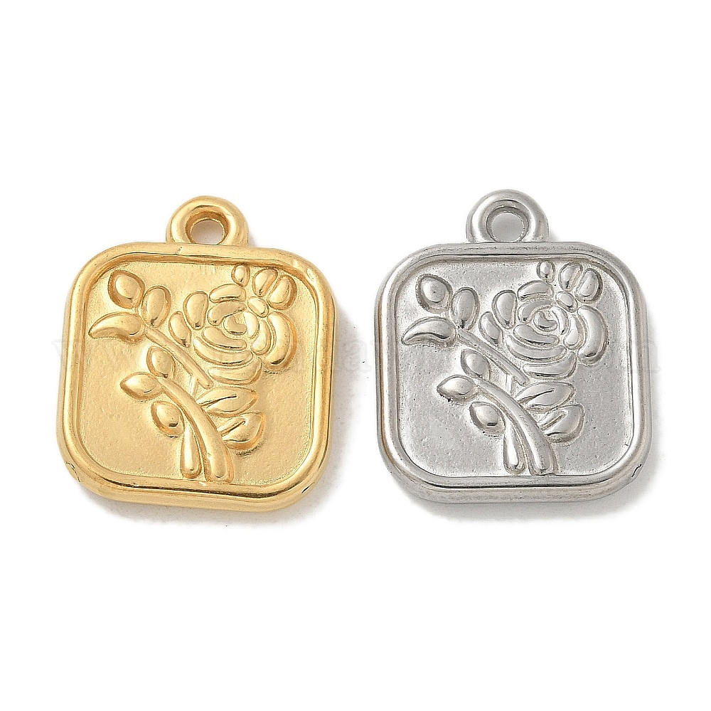304 подвески из нержавеющей стали, квадрат с цветочным шармом