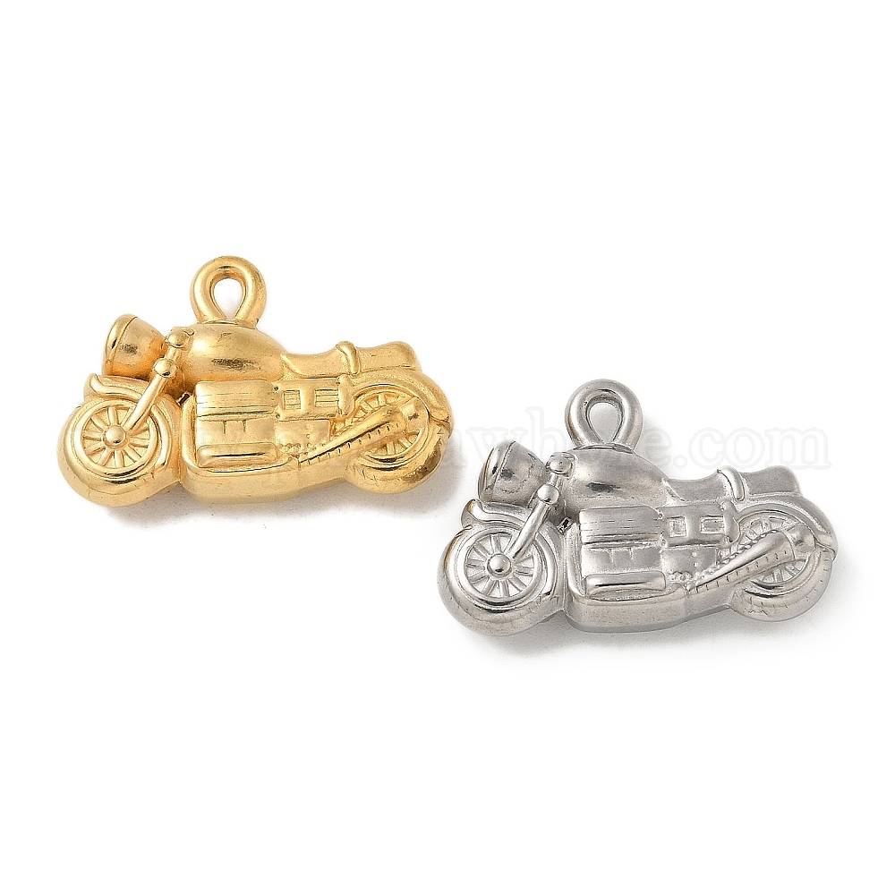• Настоящее золото 18K 304 Подвески из нержавеющей стали с ионным покрытием (IP), мотоцикл очарование, реальный 18 k позолоченный, 17x25.5x6.5 мм, отверстие : 1.8 мм