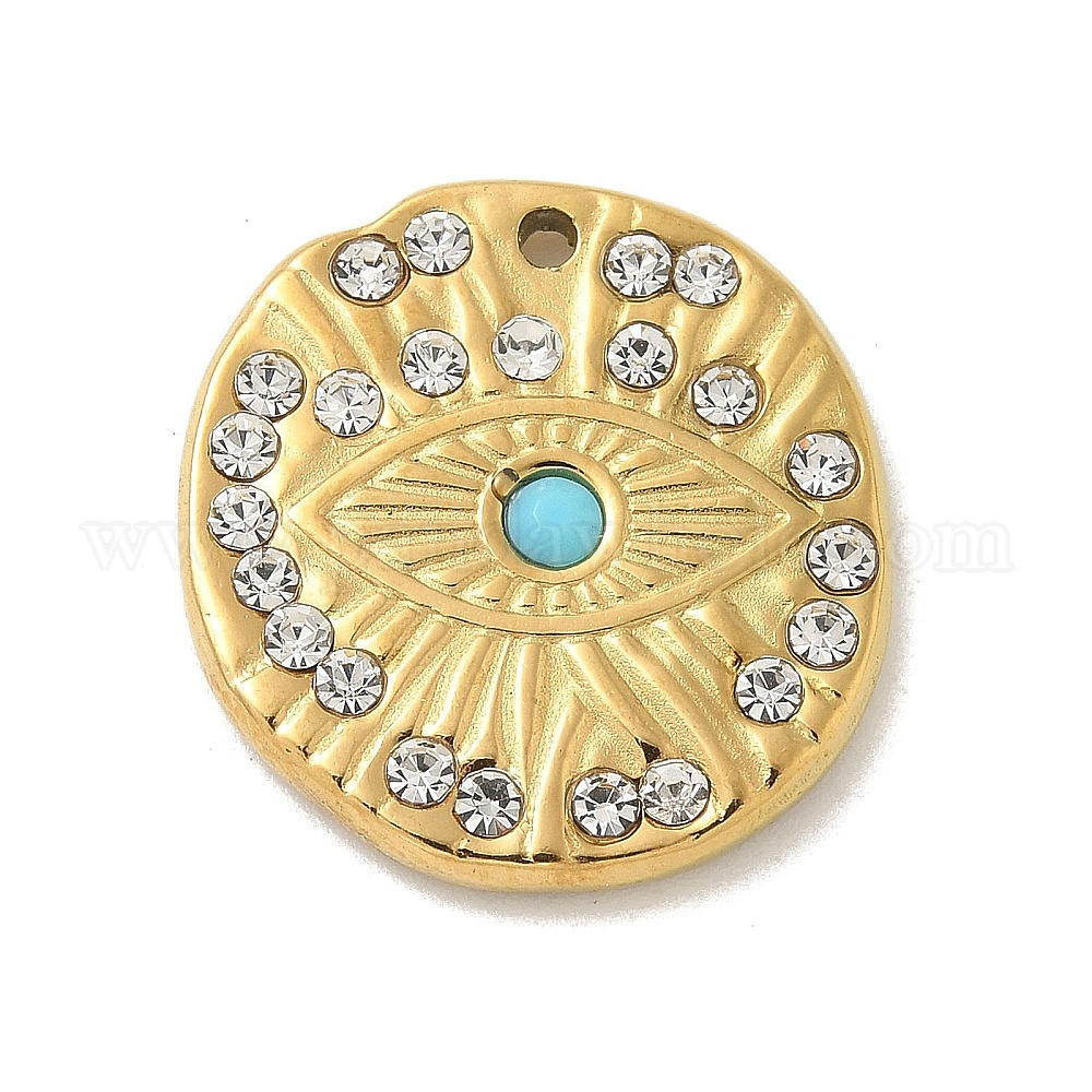 • Золотой 304 из нержавеющей стали горный хрусталь подвески, плоско-круглые, злые глаза, золотые, 19.5x18.5x3 мм, отверстие : 1.4 мм