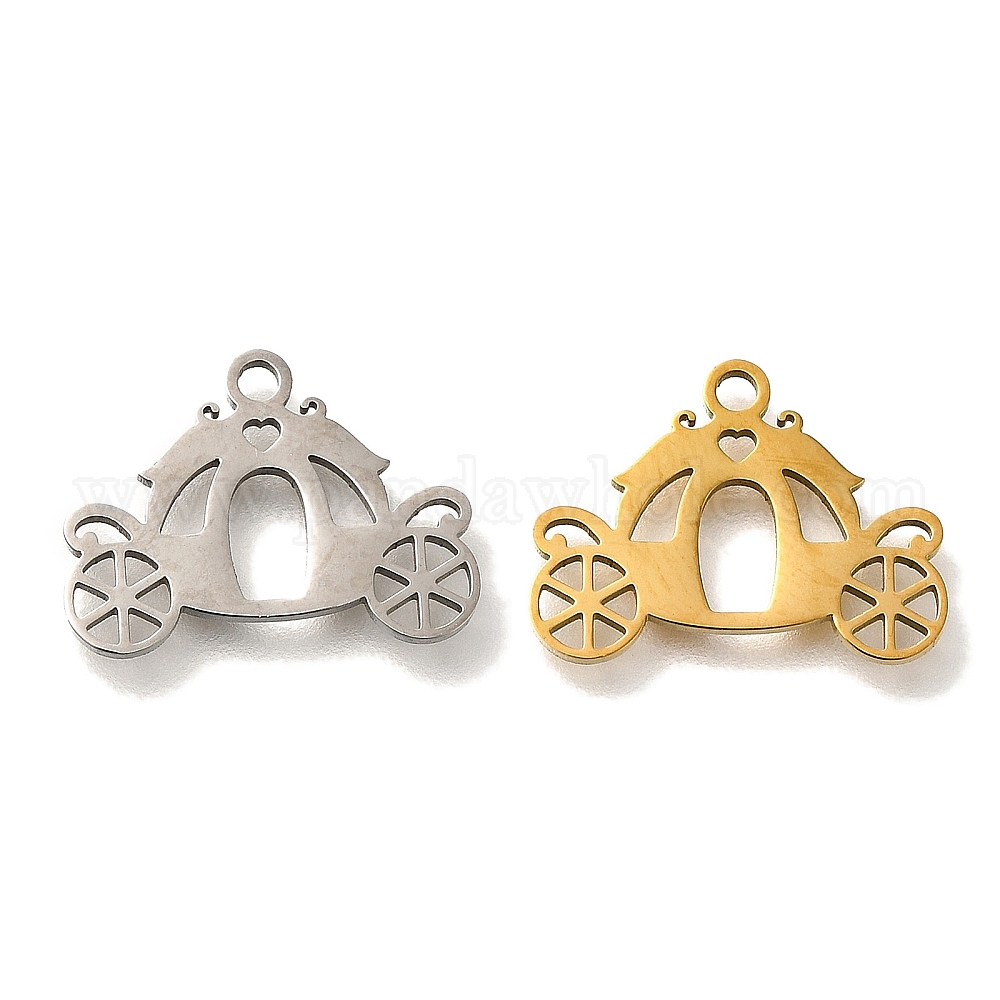 • Золотой 201 подвески из нержавеющей стали, подвески в виде тыквенной тележки, золотые, 12x16.5x1 мм, отверстие : 1.5 мм