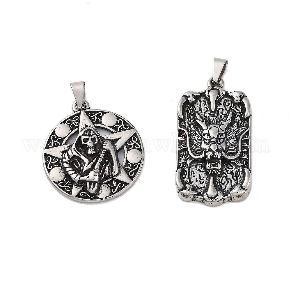 304 подвески из нержавеющей стали, прямоугольный и плоский круглый брелок, античное серебро