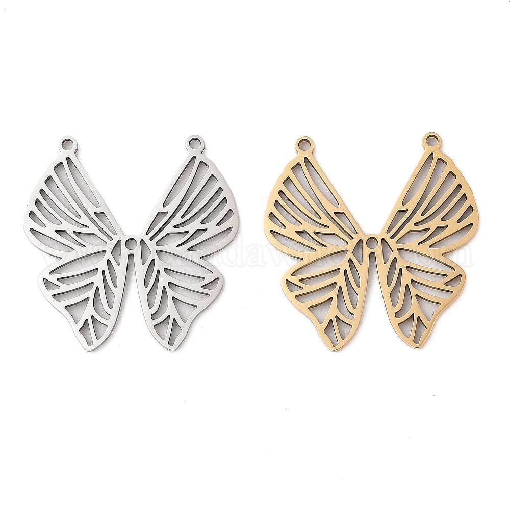• Настоящее золото 18K 201 подвески из нержавеющей стали, очарование бабочки, лазерная резка, реальный 18 k позолоченный, 27x26.5x1.5 мм, отверстие : 1.4 мм
