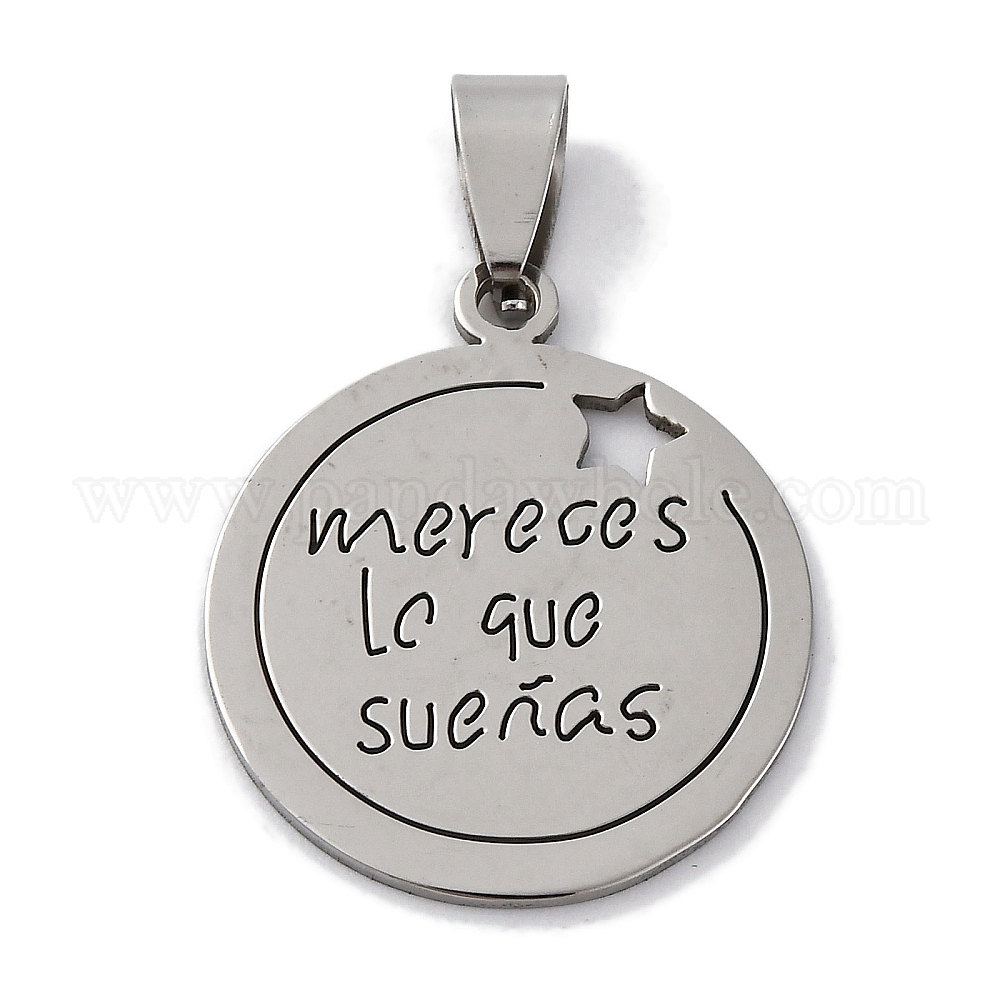 201 подвески из нержавеющей стали, плоский круглый с подвеской в виде звезды и слова, лазерная резка, анти-тускнение