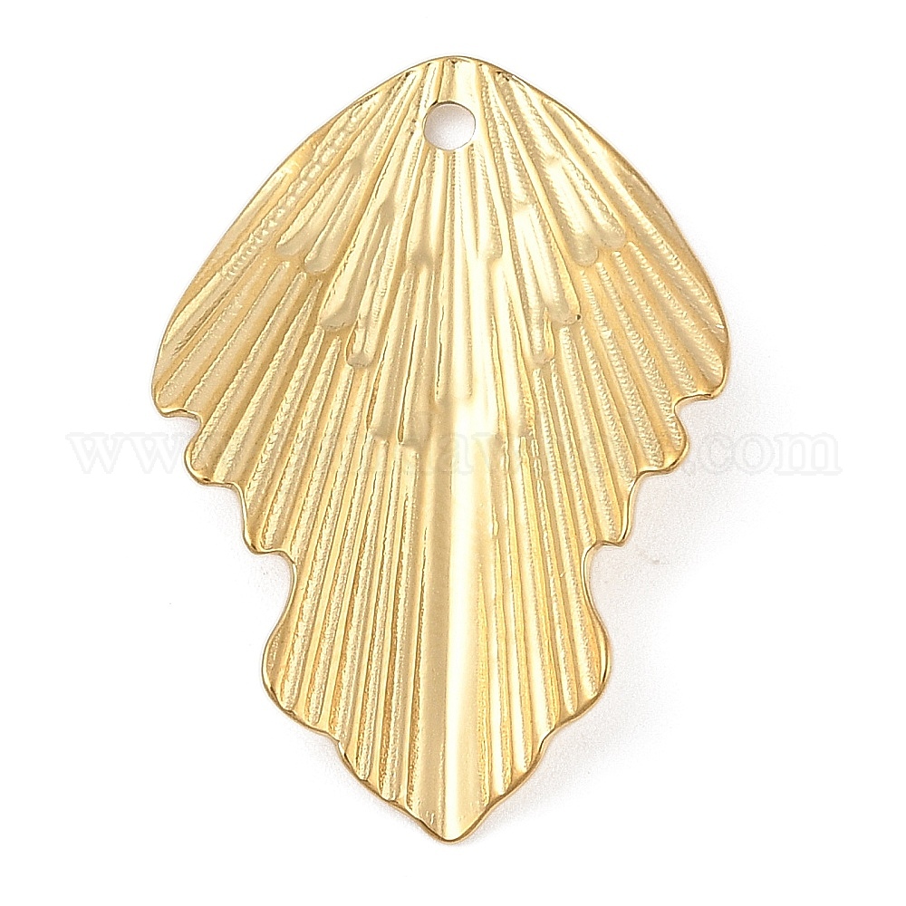 • Настоящее золото 18K 304 подвески из нержавеющей стали, лист прелести, вакуумное покрытие pvd, реальный 18 k позолоченный, 31.5x22.5x5 мм, отверстие : 1.8 мм