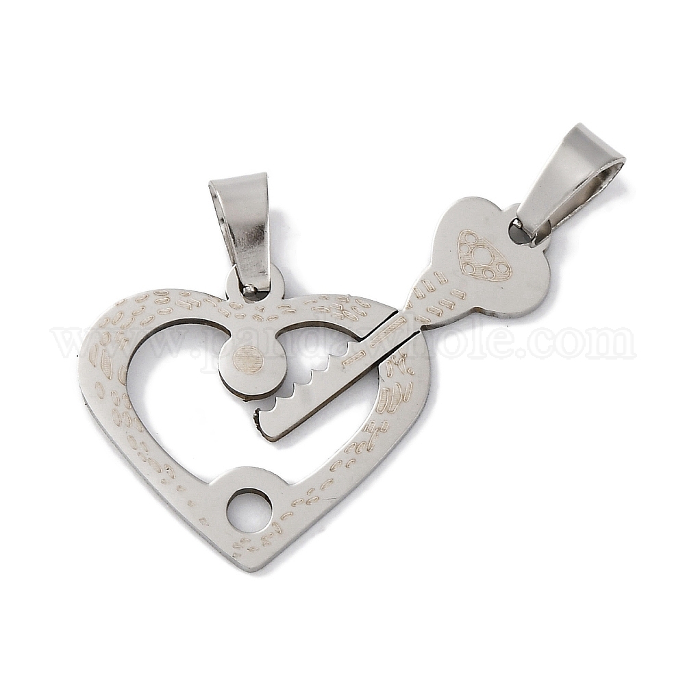 201 подвески из нержавеющей стали, подвеска в виде сердца и ключа, лазерная резка, анти-тускнение (02ZMWS)