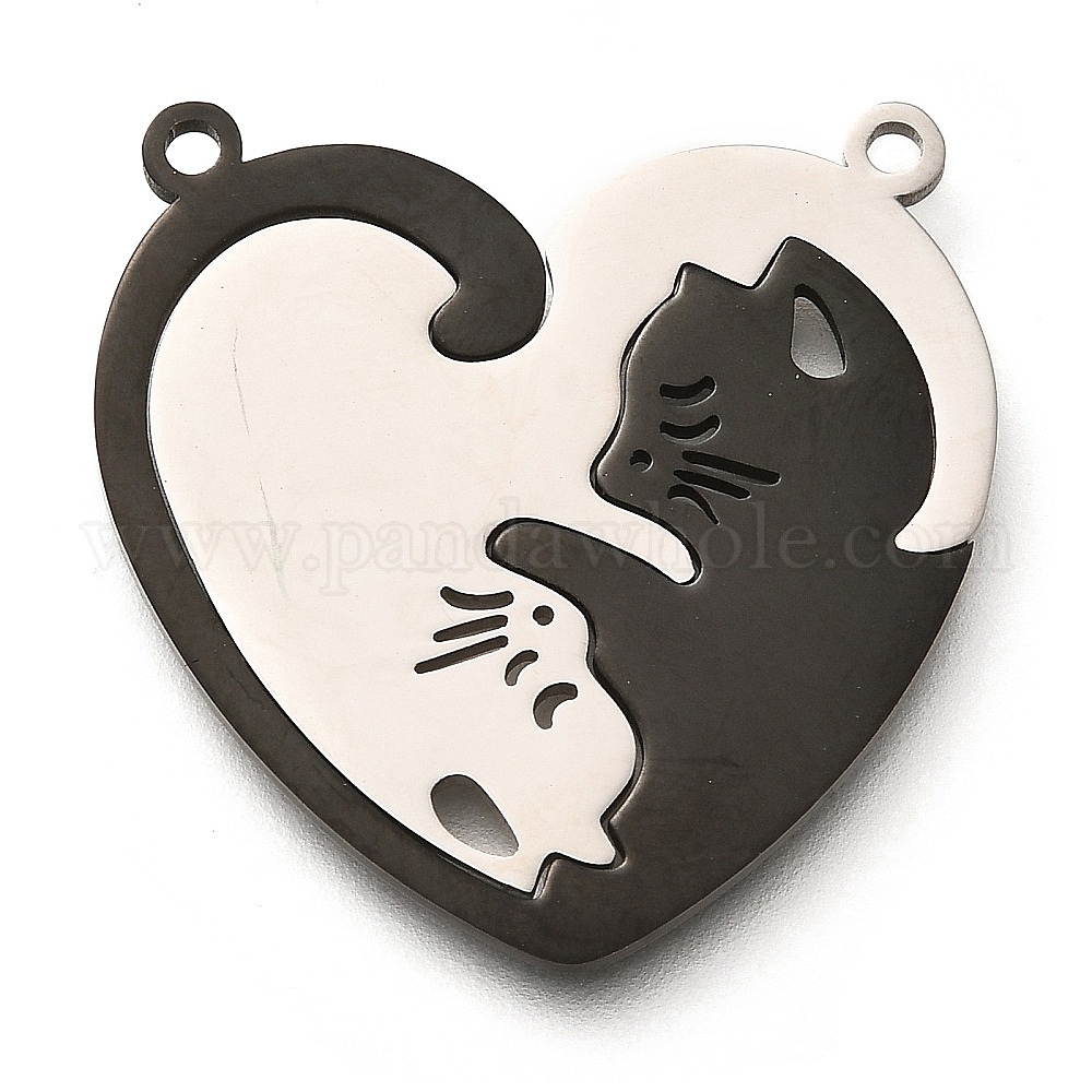 304 стали сплит подвески из нержавеющей, сердце с парой кошачьих подвесок