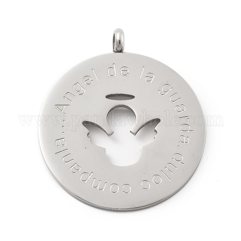 304 подвески из нержавеющей стали, полый плоский круглый с подвеской в виде ангела