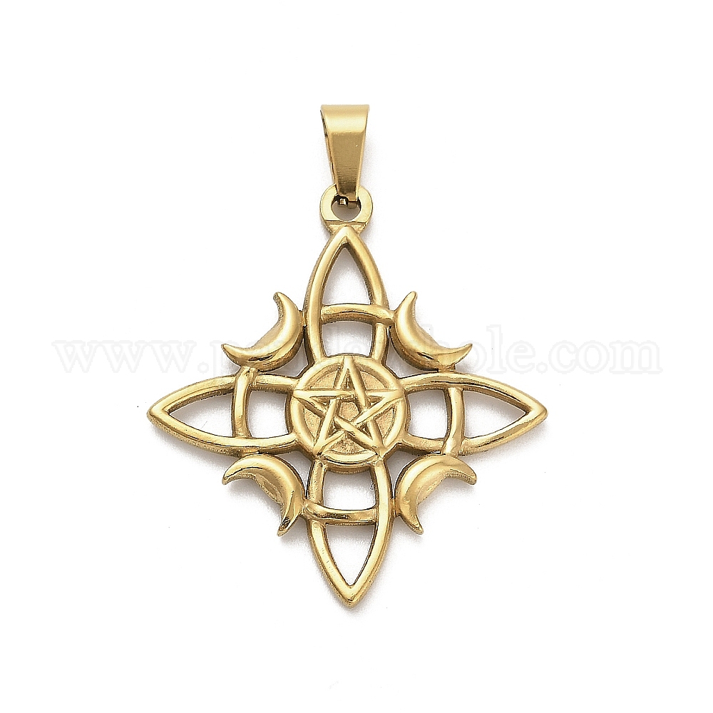 • Золотой 304 подвески из нержавеющей стали, узел ведьмы с амулетом «звезда луна», ионное покрытие (ip), золотые, 34.5x31.5x2.5 мм, отверстие : 7.5x3.5 мм