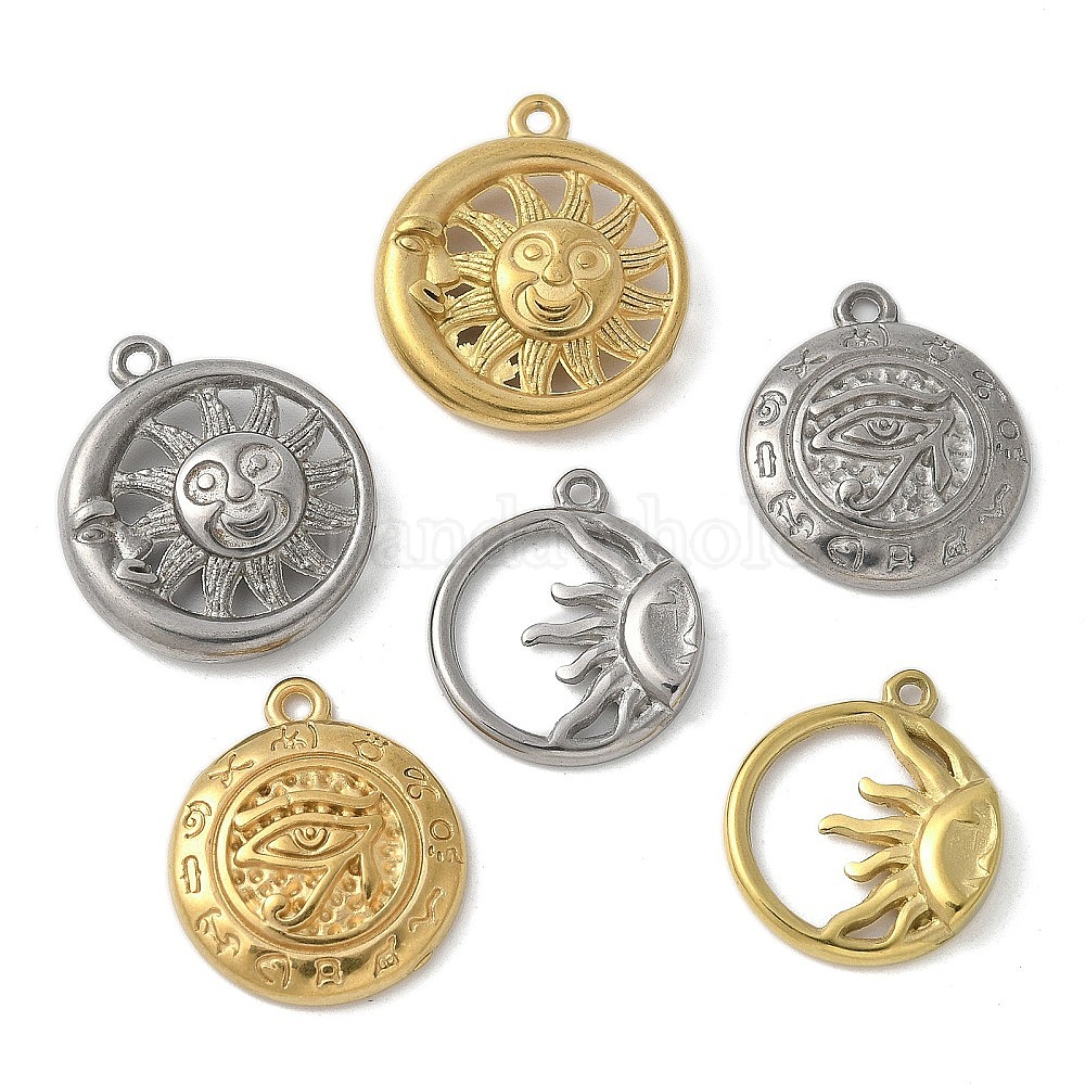 304 подвески из нержавеющей стали, плоский круглый с подвесками в виде глаз и солнца