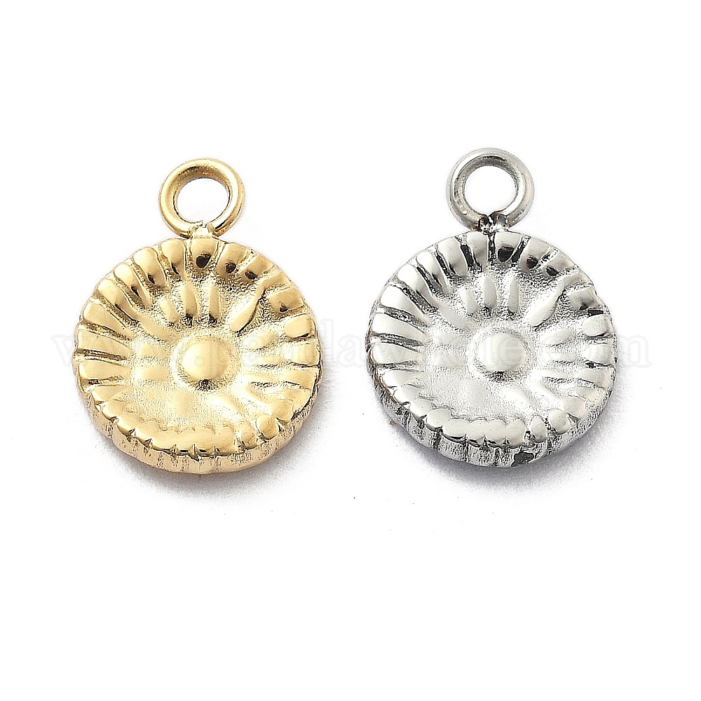 • Настоящее золото 18K 304 прелести нержавеющей стали, плоский круглый шарм, ионное покрытие (ip), реальный 18 k позолоченный, 11x8.5x2 мм, отверстие : 1.6 мм