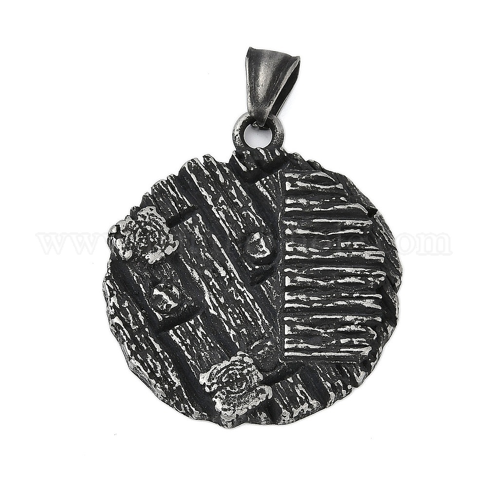 • Античное Серебро 304 подвески из нержавеющей стали, плоский круглый шарм, античное серебро, 40x35.5x3.5 мм, отверстие : 8x4.5 мм