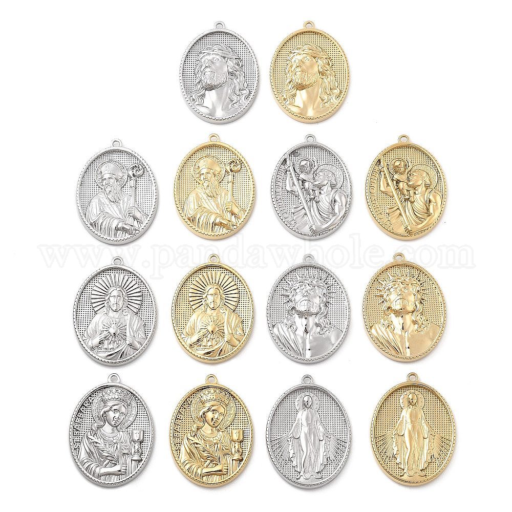 304 подвески из нержавеющей стали, овал со святым шармом, ионное покрытие (ip)