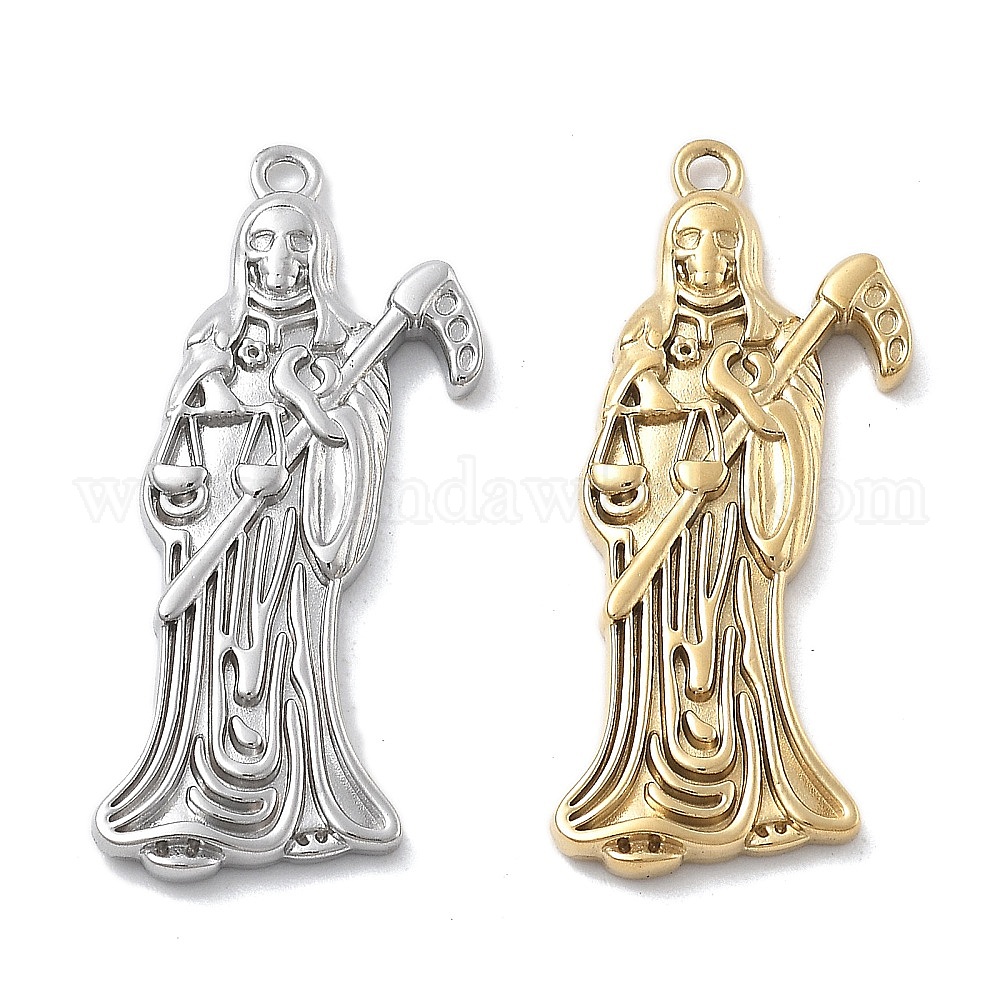 • Настоящее золото 18K 304 подвески из нержавеющей стали, очарование Санта Муэрте, ионное покрытие (ip), реальный 18 k позолоченный, 29.5x14x2.5 мм, отверстие : 1.4 мм