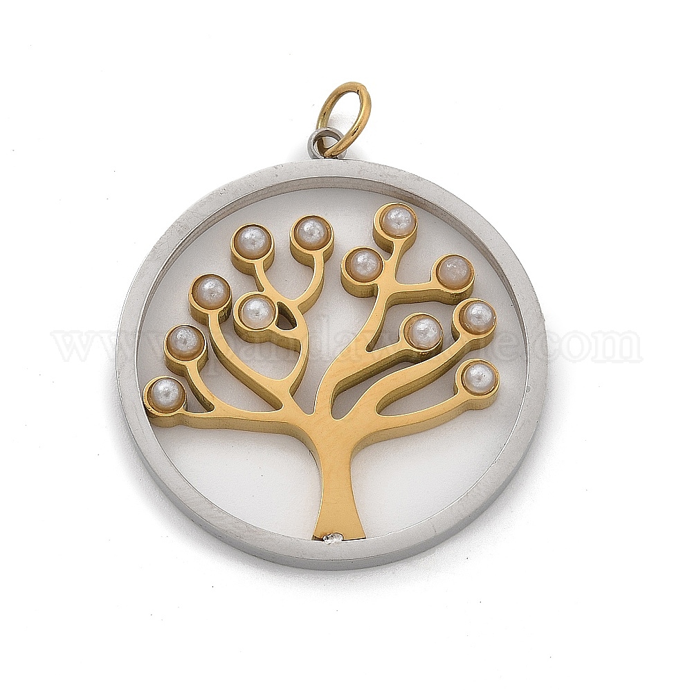 304 подвески из нержавеющей стали, с пластиковым искусственным жемчугом и прыгающим кольцом, круглое кольцо с подвесками в виде дерева жизни, ионное покрытие (ip)