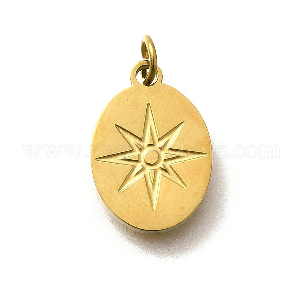 • Настоящее золото 18K 304 прелести нержавеющей стали, с целью перехода в кольце, овал со звездой, ионное покрытие (ip), реальный 18 k позолоченный, 13x9x1.5 мм, отверстие : 3 мм