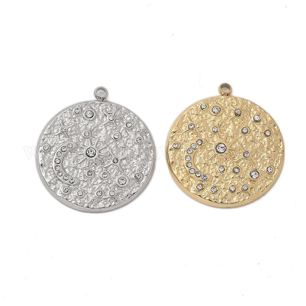 304 из нержавеющей стали горный хрусталь подвески, плоские круглые прелести, ионное покрытие (ip)