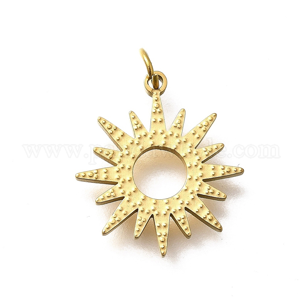• Настоящее золото 18K 304 подвески из нержавеющей стали, с целью перехода в кольце, солнечные чары, лазерная резка, ионное покрытие (ip), реальный 18 k позолоченный, 16.5x14.5x1.5 мм, отверстие : 2.5 мм