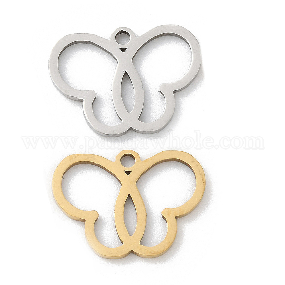 • Настоящее золото 18K 201 подвески из нержавеющей стали, очарование бабочки, лазерная резка, ионное покрытие (ip), реальный 18 k позолоченный, 11.5x15.5x1 мм, отверстие : 1.5 мм