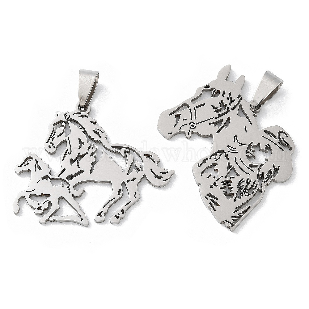 201 подвески из нержавеющей стали, лошадь очарование, лазерная резка, анти-тускнение