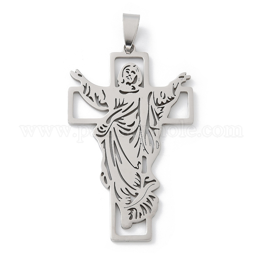 201 из нержавеющей стали большие кулоны, крест с оберегом Иисуса, лазерная резка, анти-тускнение