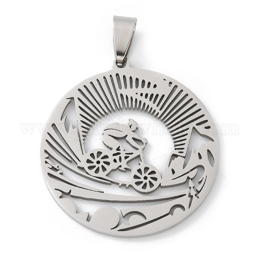 201 подвески из нержавеющей стали, плоский круглый и велосипедный талисман, лазерная резка, анти-тускнение (0315NR)