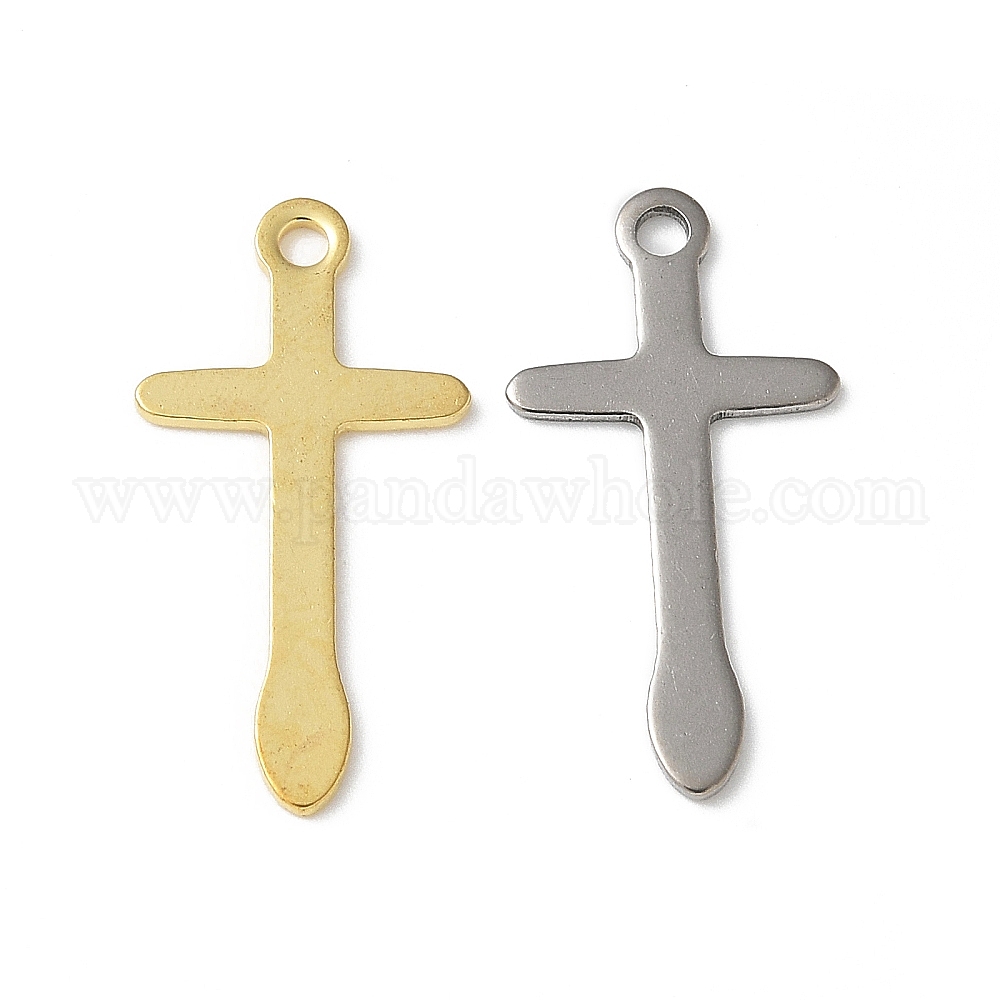 • Золотой 201 подвески из нержавеющей стали, крестик, золотые, 21.5x11x0.5 мм, отверстие : 1.6 мм