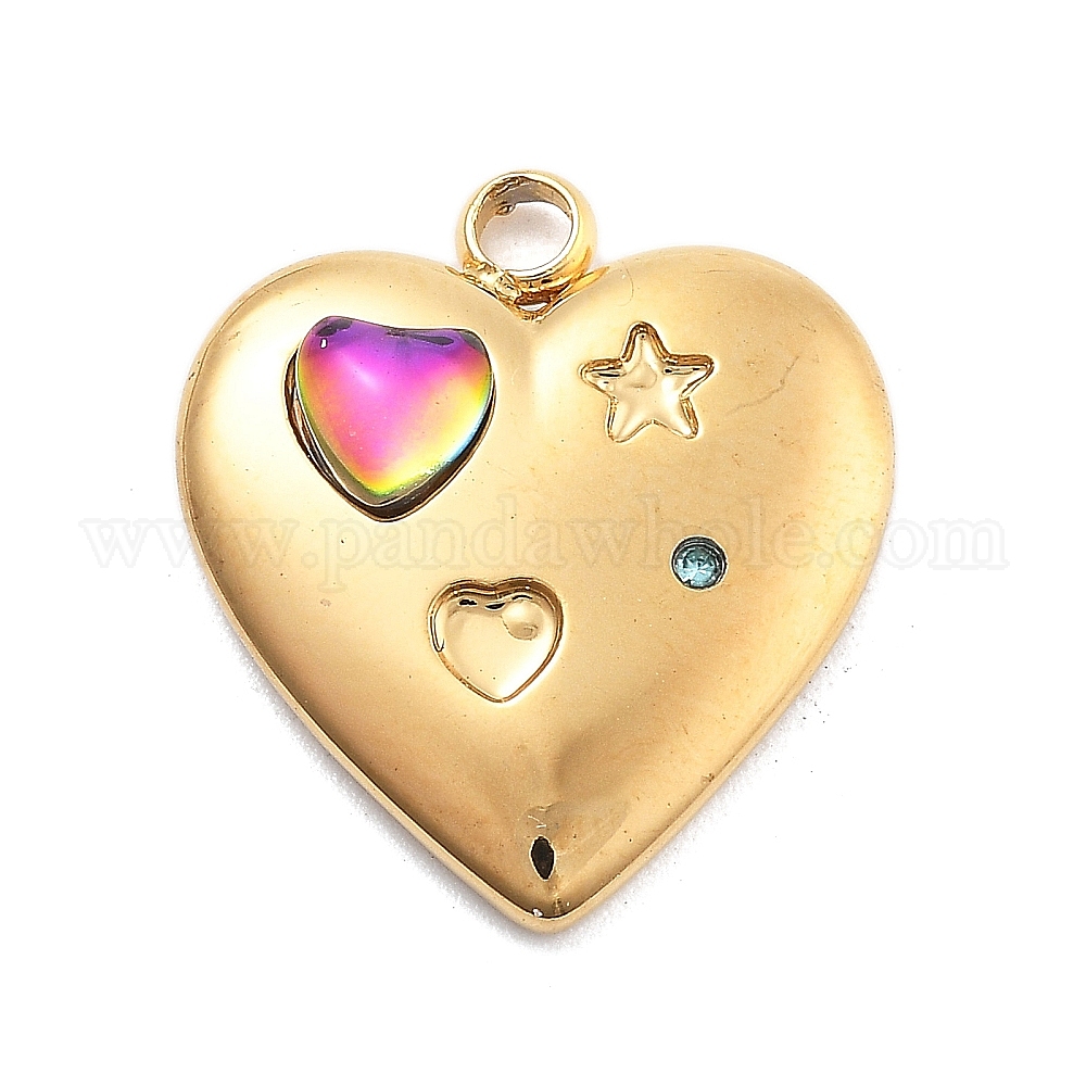 304 кулон из нержавеющей стали, горный хрусталь и стекло, вакуумные покрытия, сердце