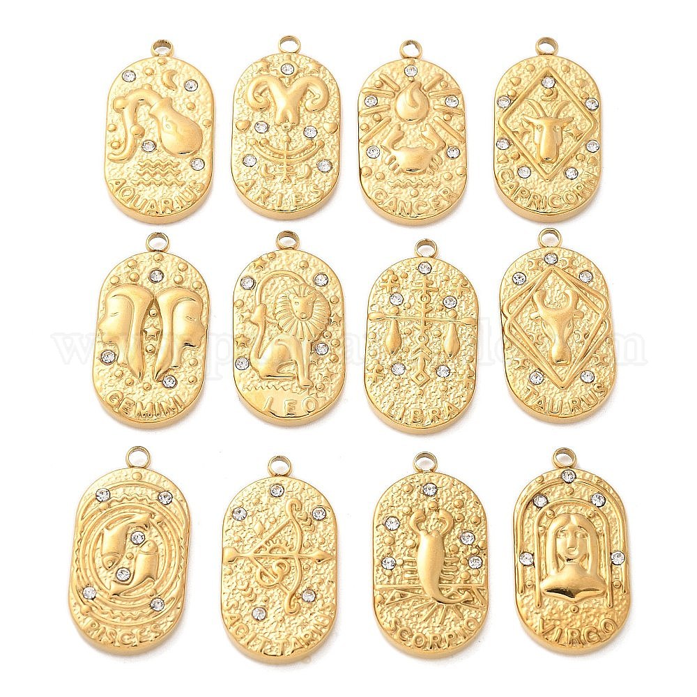 304 подвески из нержавеющей стали, со стразами, овал с подвеской в виде созвездия, реальный 18 k позолоченный