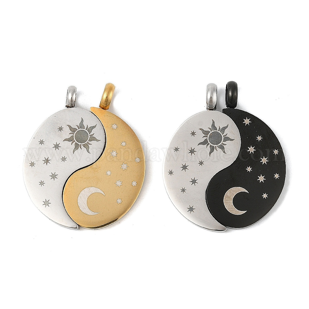 304 стали сплит подвески из нержавеющей, инь-янь с талисманом солнца и луны, ионное покрытие (ip)