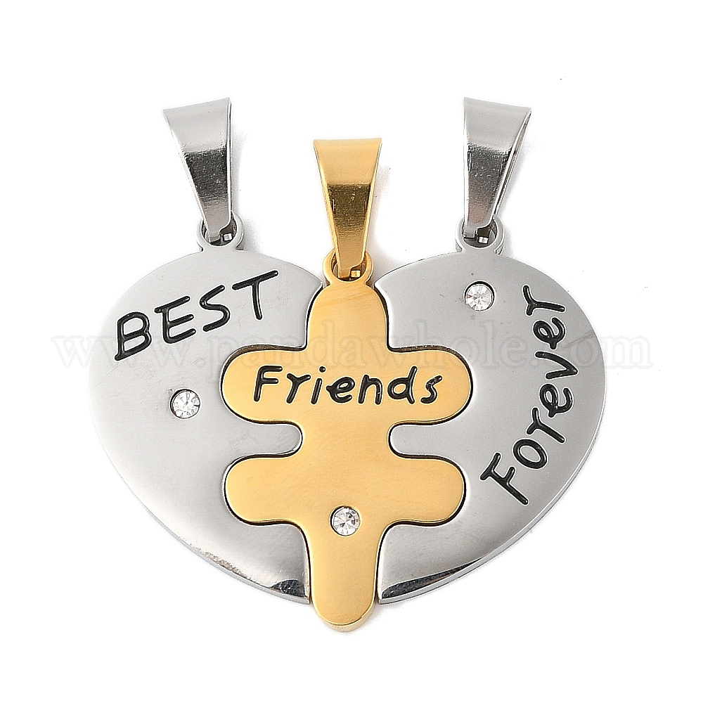 • Золотой & Цвет Нержавеющей Стали 304 кулон из нержавеющей стали со стразами., ионное покрытие (ip), сердце, лучшие друзья навсегда, золотые и нержавеющая сталь цвет, 31x37x2.5 мм, отверстие : 8x4.5 мм