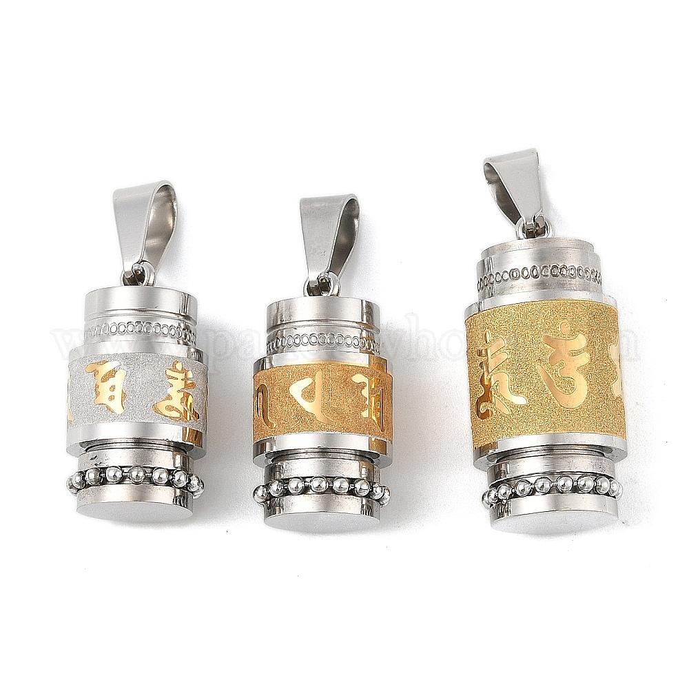 Буддийские украшения 304 текстурированные подвески из нержавеющей стали, Столбец с om mani padme hum