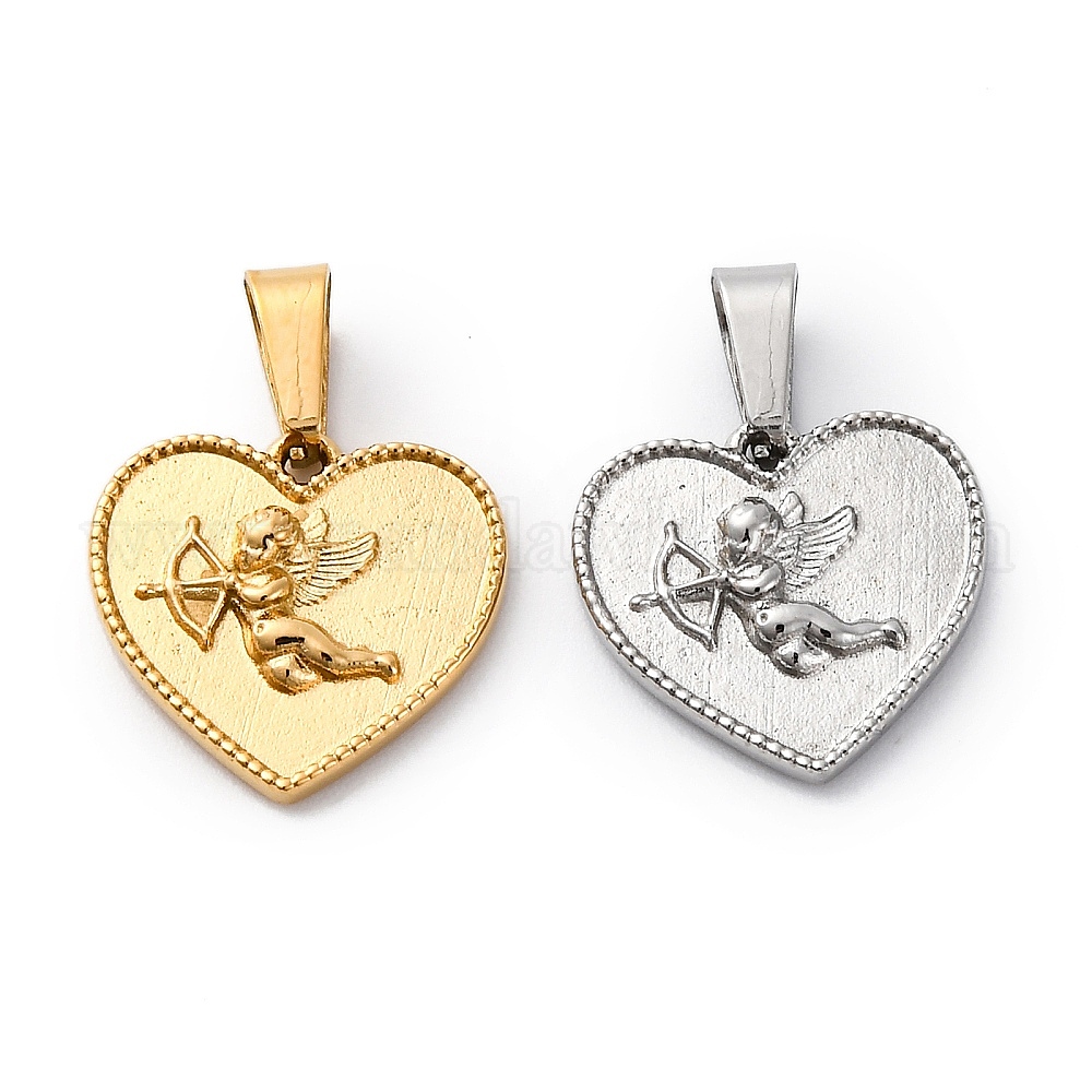 304 прелести нержавеющей стали, ионное покрытие (ip), сердце с ангельскими подвесками