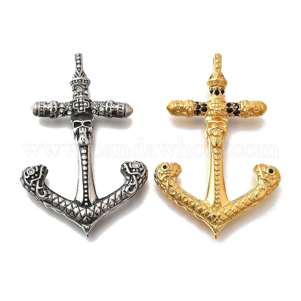 316l подвески из нержавеющей стали с микропаве из прозрачного кубического циркония, лодочный якорь
