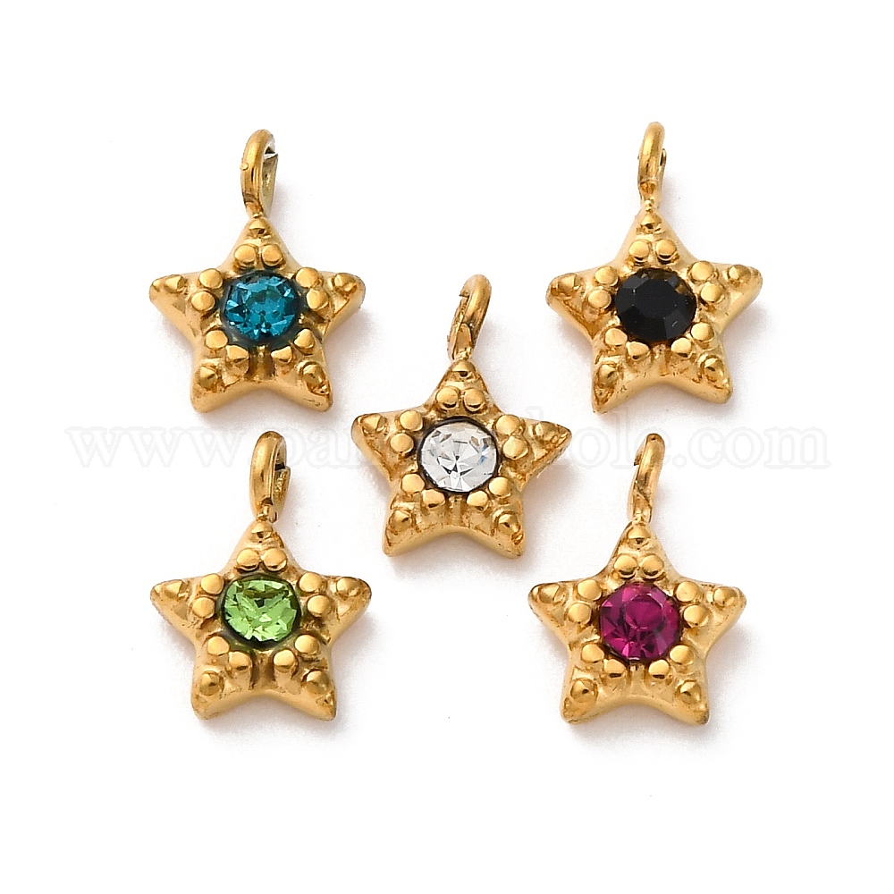 304 из нержавеющей стали амулеты горный хрусталь, ионное покрытие (ip), реальный 14 k позолоченный, звезда очарование (031W1X)