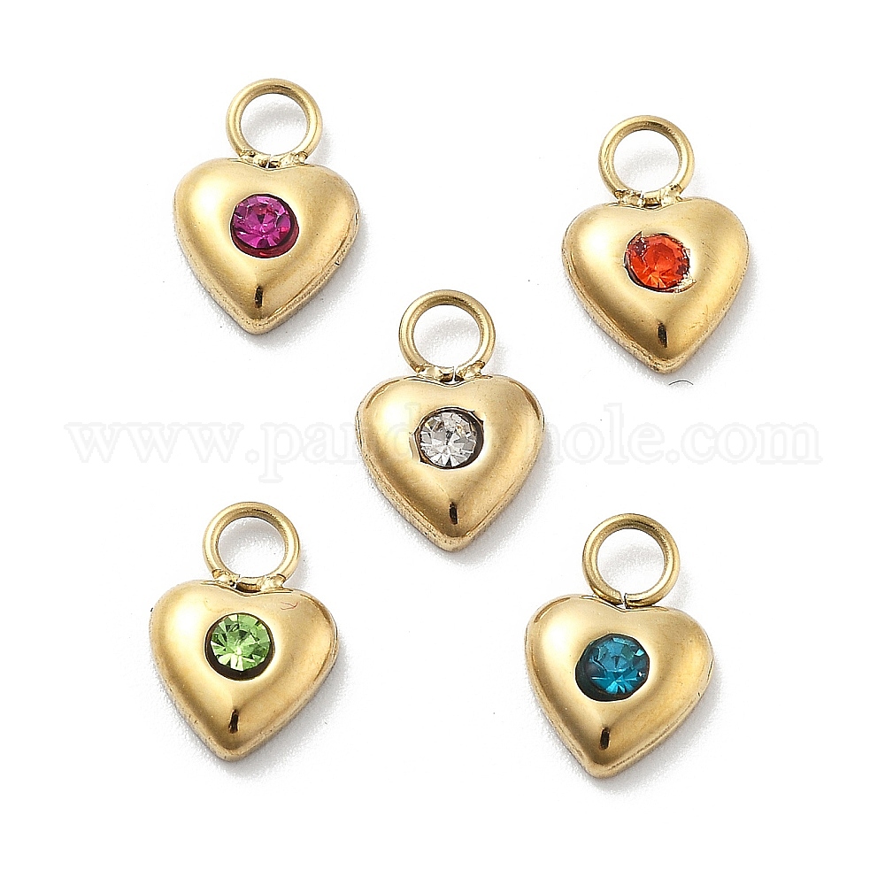 Сердце 304 из нержавеющей стали горный хрусталь прелести, ионное покрытие (ip), реальный 14 k позолоченный