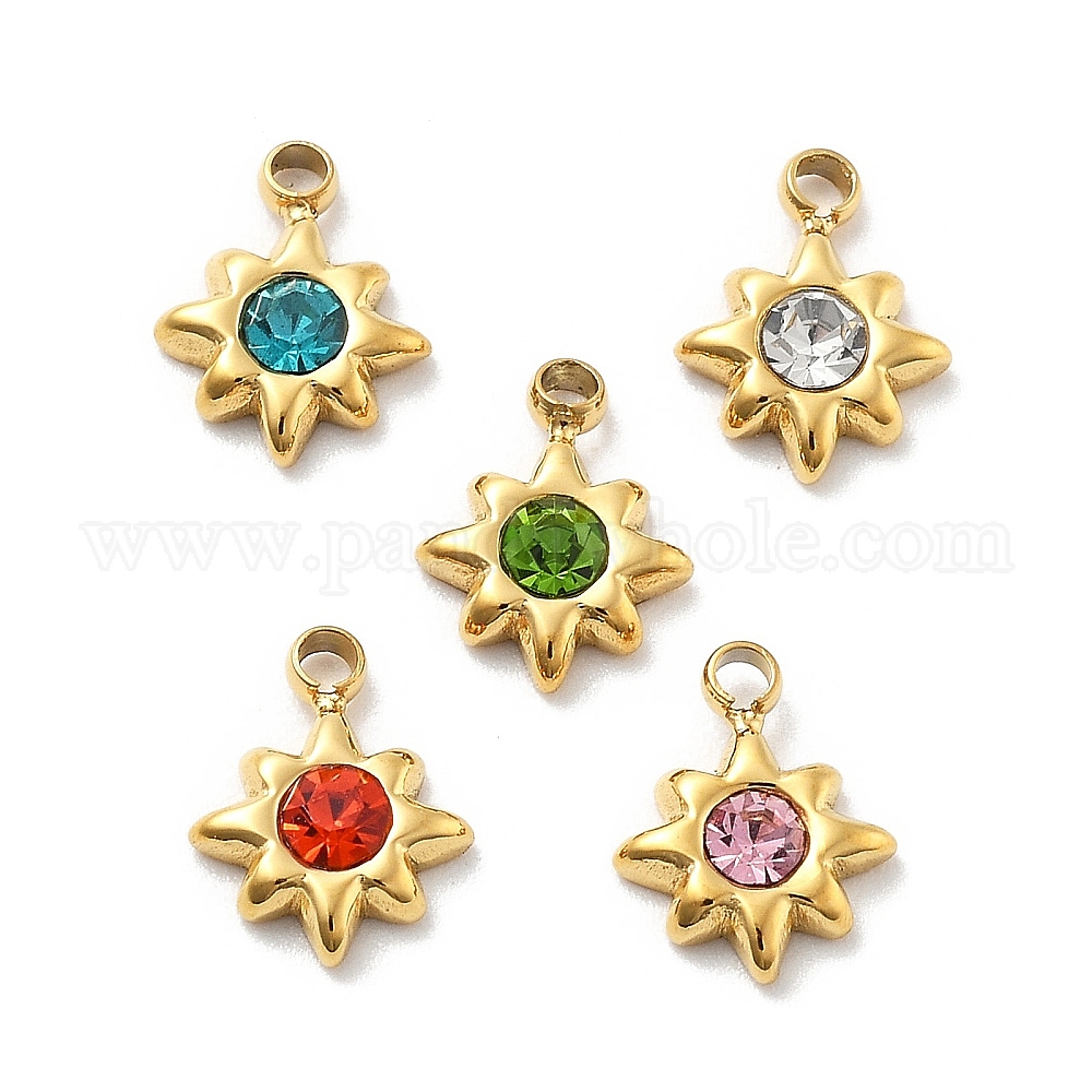 Звезда 304 подвески из нержавеющей стали со стразами, ионное покрытие (ip), реальный 14 k позолоченный