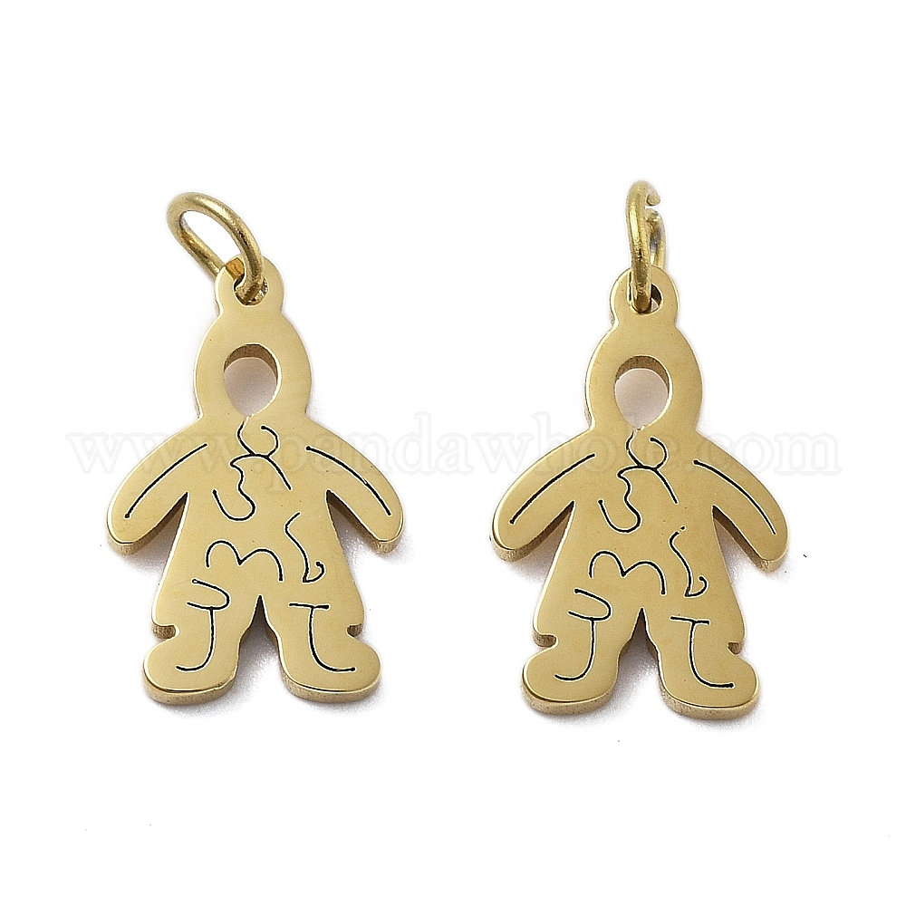 • Настоящее золото 18K 304 подвески из нержавеющей стали, шармы в форме человека , с целью перехода в кольце, ионное покрытие (ip), реальный 18 k позолоченный, 14x8.5x1.5 мм, отверстие : 2.5 мм