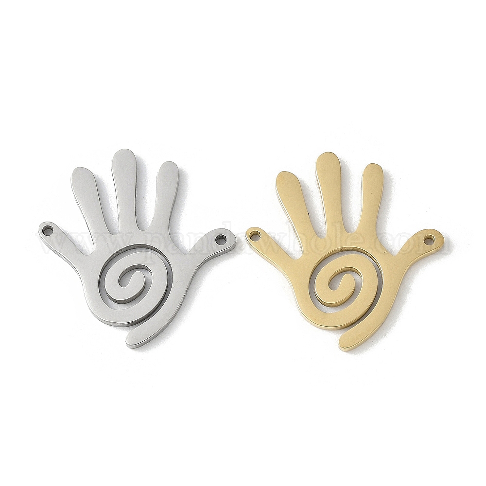 • Настоящее золото 18K 304 подвески из нержавеющей стали, амулет в виде полой ладонной спирали, реальный 18 k позолоченный, 25.5x23.5x1.5 мм, отверстие : 1.2 мм