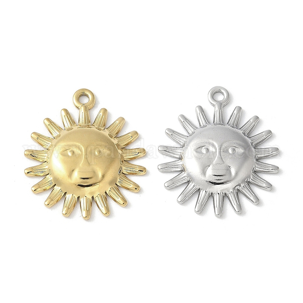 • Настоящее золото 18K 304 подвески из нержавеющей стали, очарование солнца, реальный 18 k позолоченный, 22.5x18.5x2.5 мм, отверстие : 1.6 мм