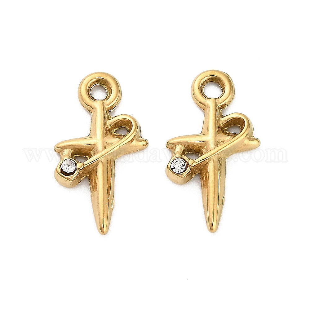 304 кулон из нержавеющей стали с кристаллами и стразами, ионное покрытие (ip), крест прелести
