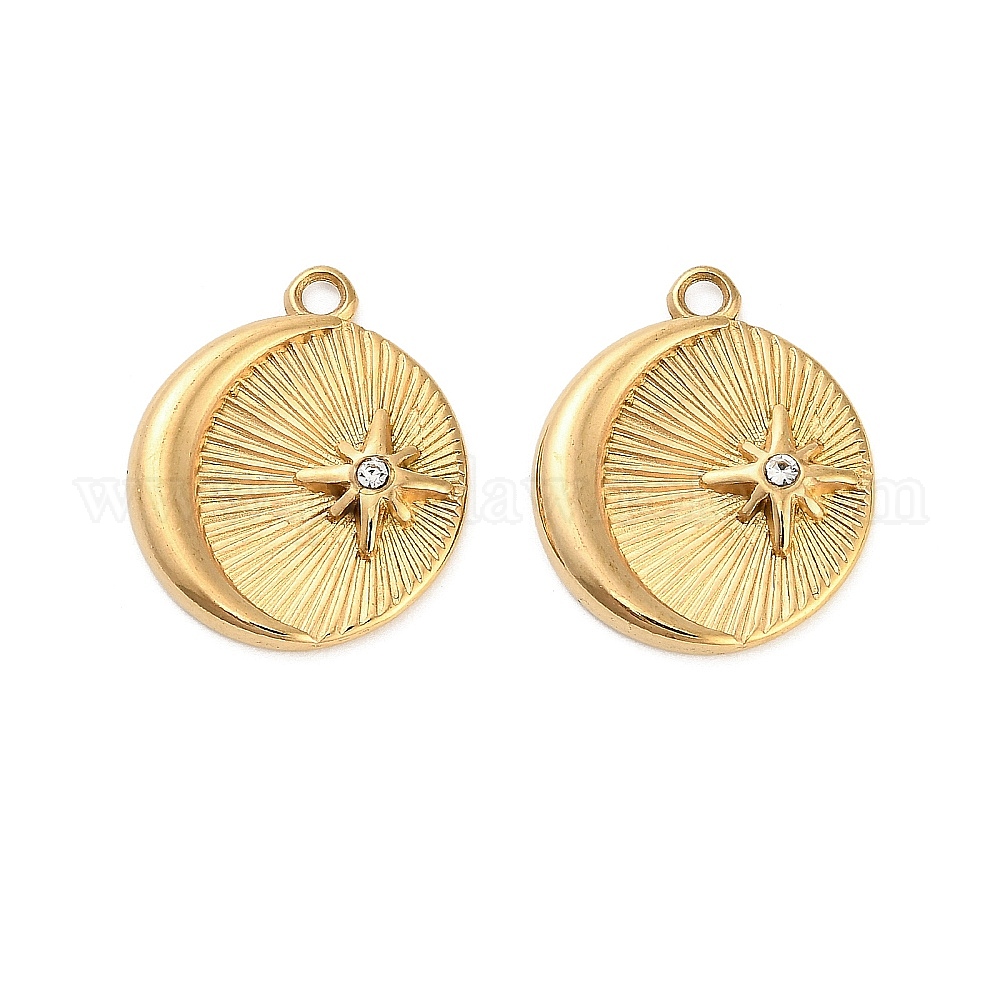 304 кулон из нержавеющей стали с кристаллами и стразами, ионное покрытие (ip), Звездно-лунные чары
