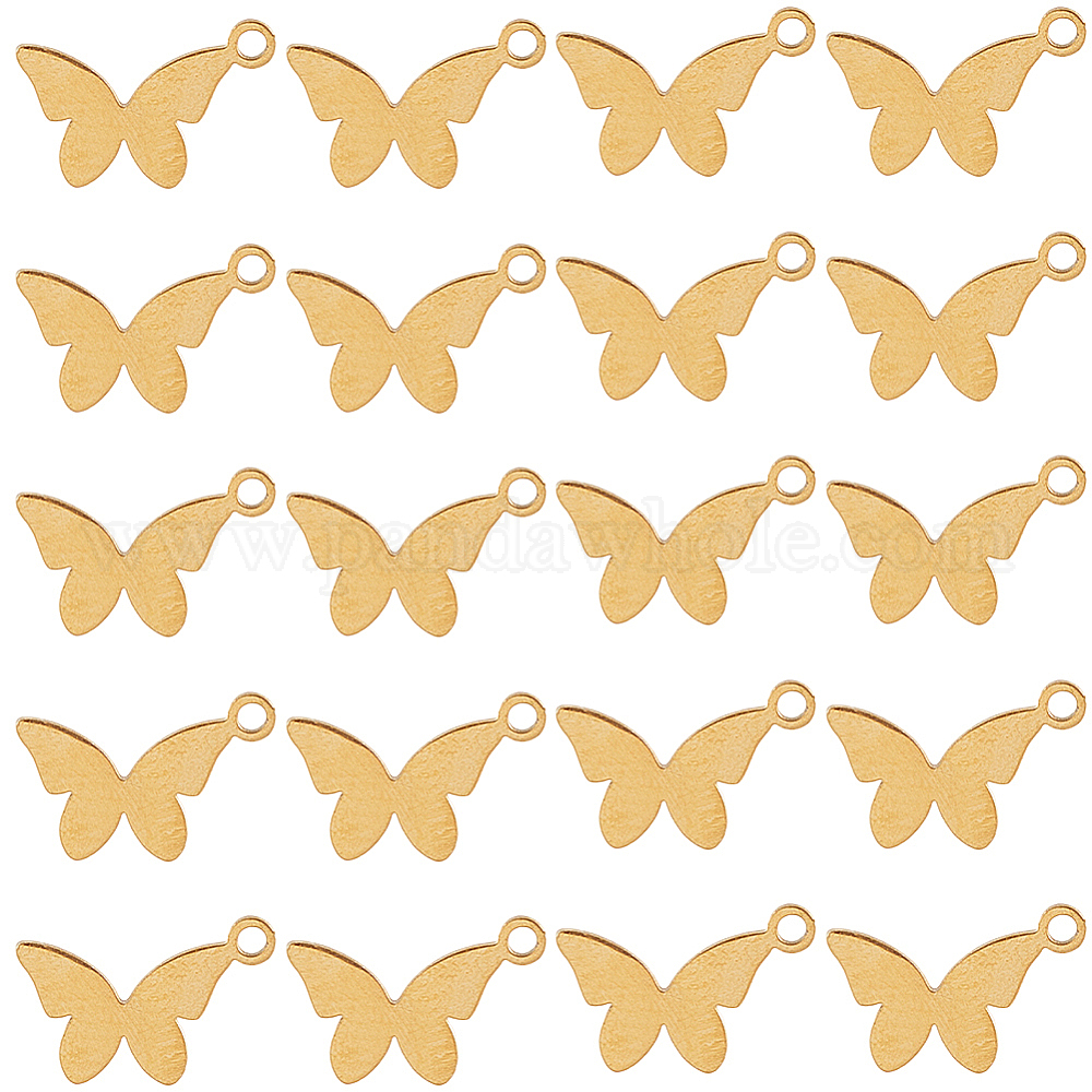 • Золотой 30шт. подвески из нержавеющей стали, очарование бабочки, золотые, 6.5x10x1 мм, отверстие : 1 мм