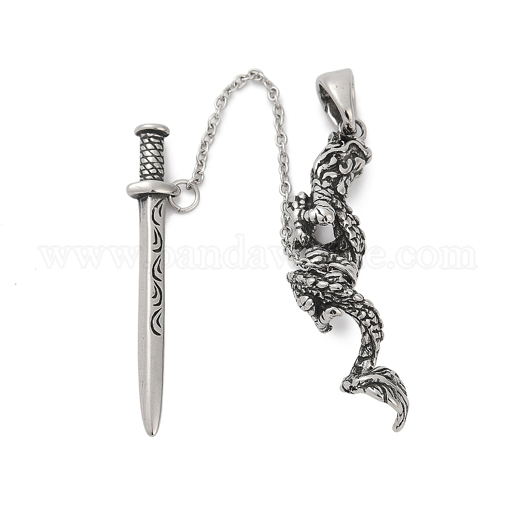 316 большие подвески из хирургической нержавеющей стали, Дракон с амулетом меча