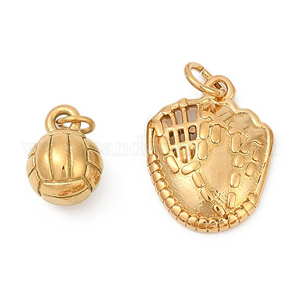• Другие 304 подвески из нержавеющей стали, с целью перехода в кольце, реальный 18 k позолоченный, бейсбольные перчатки, 16.5x13x3 мм, отверстие : 2.3 мм