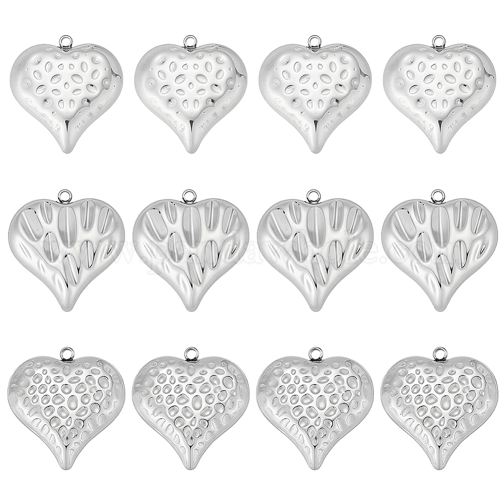12 шт 3 стили 304 подвески из нержавеющей стали, шарма сердца, анти-тускнение